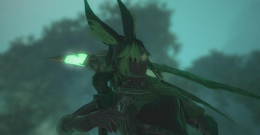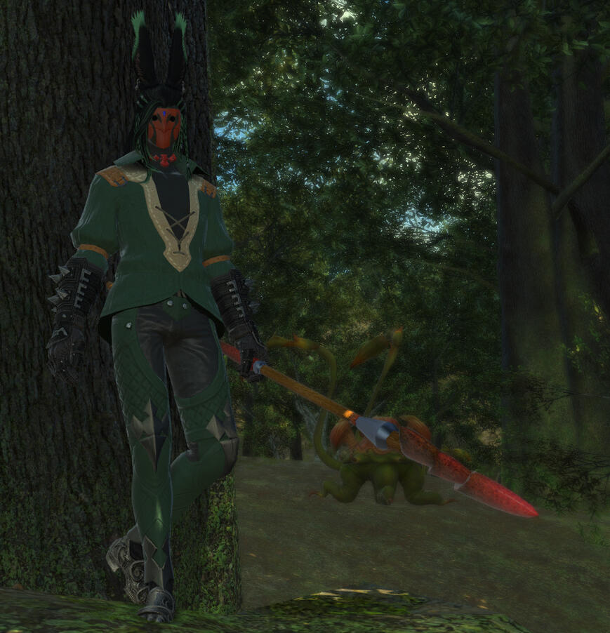 He settled in Limsa with minimal issues, blending in as if he was blending into the green of the woods, finding a home and comradery with the Rogue's guild.His superior hearing for sleuthing from a distance- pinpointing interesting topics and slips of shady tongues plus his close-quarters combat experience serving well with the group and a 'trick of the eye' thats secret from his fellows, earning himself his own name as the Verdant Tyrant or Vert for short. Favoring more a polearm than the knives though still proficient with them.It was they who mellowed him out as well as just being in such a lively place compared to the isolation and solitude of the forests and he embraces the code, but he slips back into that executioner mindset when something really bugs him. He neither likes or dislikes it, its both a defense and coping mechanism and will do nothing to change that.